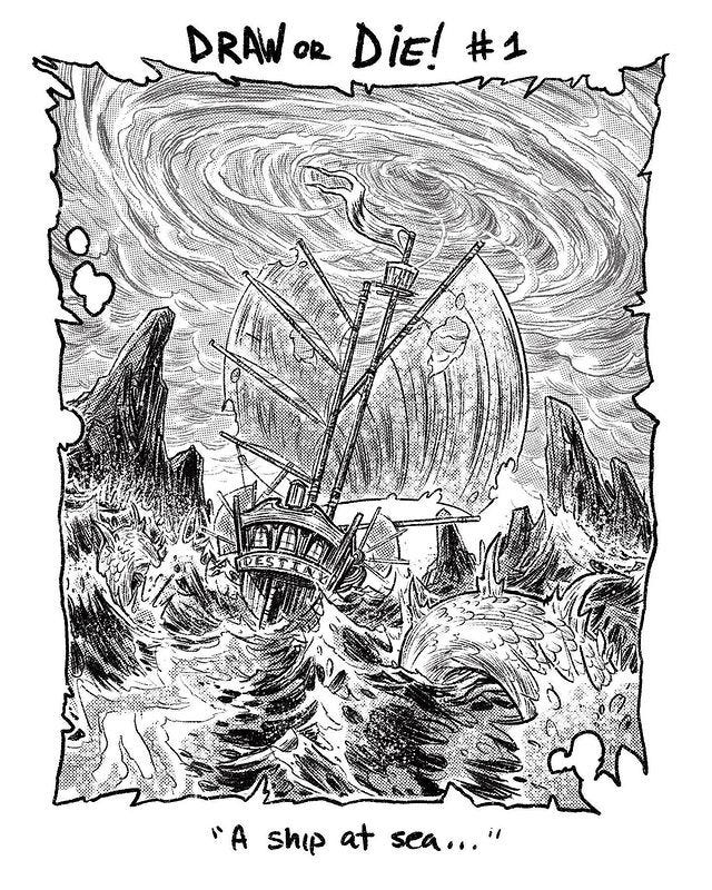“Being an artist can feel like this sometimes; adrift at sea being chased by monsters, narrowly avoiding the shoals and sharp rocks, hoping I can weather the next storm…” - Christopher Beck
