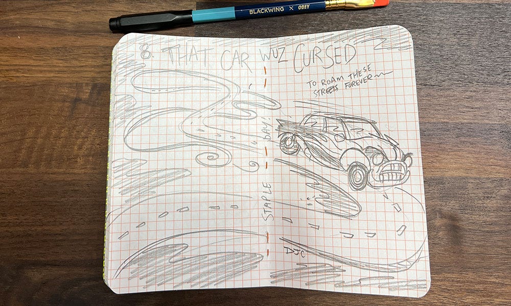 Yesterday I didn’t have much time to work on mine, I was out doing day job things, but I usually always have my Field Notes and Blackwing Pencil handy. I originally wanted to do this one on the ipad and add some color. I suggest drawing out the first thing you think about. If you think about some elaborate digital painting you don’t have time to do, maybe just sketch out the composition. It still counts!