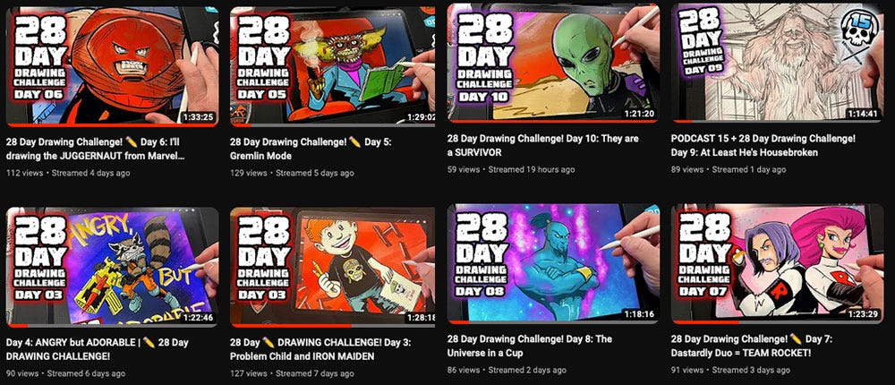 Since I committed to drawing every day in the February challenge anyway, I would just go live every night at the same time to draw that day’s prompt.